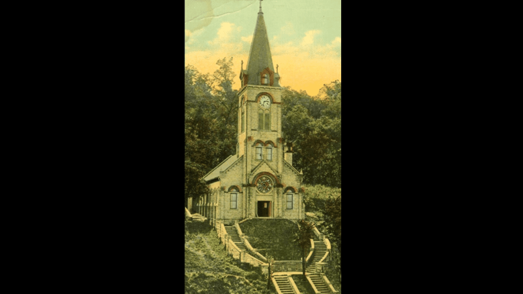 The former Our Lady of Lourdes Catholic Church was demolished in 1934 when it was deemed structurally unsound by someone, and only remembered on post cards and souvenirs.