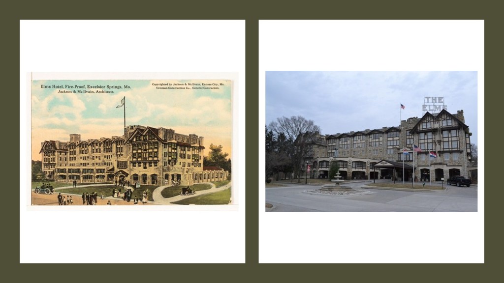The Elms Hotel illustrated in this post card on the left was said to have opened in 1912, and is still in operation as The Elms Hotel and Spa today on the right.