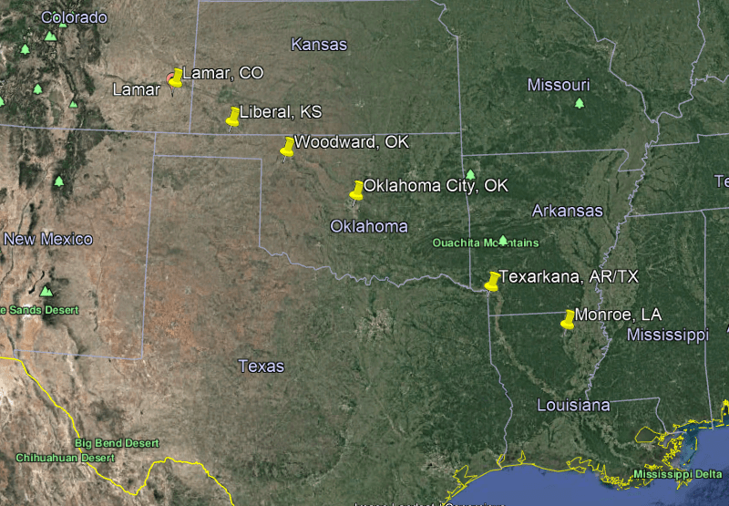 Circle Alignments on the Planet Algiers – Part 8 Baton Rouge, Louisiana to Springfield, Missouri