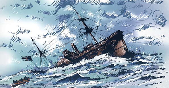 Previous Image Next Image New-Orleans-Evening-Star-Steamship-sinking The Evening Star sank off the shores of South Carolina when it encountered a hurricane in October 1866. Drawing by Toan Nguyen