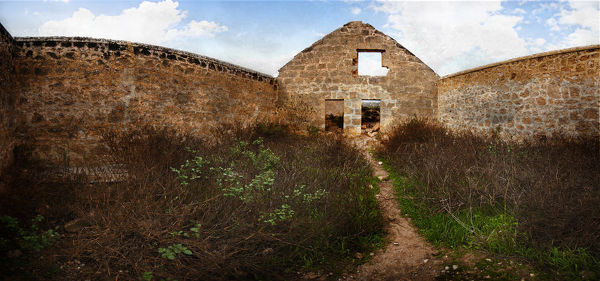 Ruins at Lynton Convict Hiring Depot, for labour for the nearby Geraldine Mine and for local farms. Buildings including a store, bakery, depot, well, bakery, lockup, hospital, lime kiln and administration block were begun in 1853, and no sooner were they finished in 1856 than the depot closed because of the harsh living conditions and transport problems. Near Port Gregory, Mid West region, Western Australia